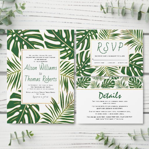 Tropical monstera and palm leaves weddingCriado por Modern Designs