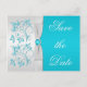 Cartão Postal De Anúncio Turquesa e Silver Floral Salvar a Data