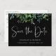 Cartão Postal De Anúncio Verde Botânico Moderno Preto Salve a Data