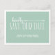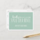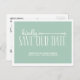 Essa charmosa e country-chic salvando a posta de data apresenta o texto "gentilmente salve nossa data" em duas fontes caprichosas. O fundo verde bonito e a borda branca desenhada à mão contribuem para a natureza mimosa do cartão.