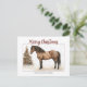 Celebre a temporada em um estilo equestre atemporal com este cartão de Natal de cavalo Paso Fino, apresentando um cavalo Paso Fino lindamente detalhado ao lado de uma árvore suavemente iluminada. Os tons vintage e texturas naturais evocam um charme clássico do campo. Personalize o nome da família para um toque pessoal que é perfeito para entusiastas de cavalos e estética rústica de Natal. Personalize seu endereço e saudação no verso.