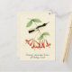 Cartão postal com ilustração vintage de história natural de Antoine-Germain Bevalet, c.) Um beija-flor verde e branco com cabeça azul-violeta pousa em uma trombeta de coral rosa, com fundo de textura de pergaminho amarelo dourado claro. Limpo digitalmente e aprimorado, mantendo suas características vintage. Apresenta nomes comuns e científicos em fontes decorativas. Selos postais dos EUA correspondentes disponíveis.