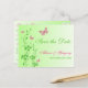 Este cartão postal de aviso de data com flores rosa quente e verde primavera tem borboletas e flores rosa e verde SIMULADAS que combinam com o convite de casamento mostrado abaixo. Se você precisar de outros itens correspondentes neste design, envie um e-mail para niteowlstudio@gmail.com.