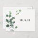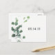 Cartão postal de aviso de data de casamento com folhas em aquarela.
