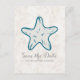 Perfeito para um casamento com tema náutico é este cartão postal de aviso prévio de casamento com estrela-do-mar rústica com uma estrela-do-mar delineada em azul escuro sobre um fundo bege claro com aparência de mármore. Este cartão postal de aviso prévio de casamento clássico e simples é fácil de personalizar com os detalhes do seu casamento. Encontre mais opções de personalização clicando em Personalizar.