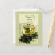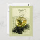 Cartão-postal de azeite russo, que inclui o pitcher com azeite de oliveira com folha de manjericão, e deliciosas azeitonas pretas, com folhas de cebolinho, acentuando-as, todas feitas em estilos de aquarela