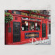 Cartão postal do famoso pub vermelho com as cestas de flores penduradas no distrito de Temple Bar, em Dublin, capital da Irlanda, com o texto: "Dublin".