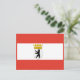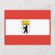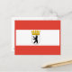 Cartão postal com bandeira variante de Berlim, bandeira estatal com faixas horizontais de vermelho e branco, com ilustração de um escudo dentro de urso preto com uma coroa