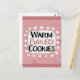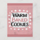 "Biscoitos assados quentes" é um design de texto divertido com uma forma de destaque branca cercada por pontos texturizados caprichosos brancos.