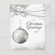 A frente deste cartão é prata com flocos de neve, fitas e as palavras: Cartões de natal. No verso diz: Que seja esta época de Natal e o próximo Ano Novo, encham seus corações de calor, amor, riso, fé e esperança. É uma carta sofisticada desejando aos seus entes queridos todas as bênçãos do mundo.