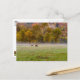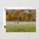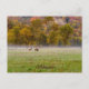 Cartão postal personalizável com um casal de alces pastando em um campo numa fria manhã de outono com alguma névoa persistente. O grande alce-macho come alguma grama enquanto a alce-fêmea observa. Isto é no Vale de Boxley, Arkansas, EUA.