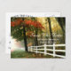 Este design apresenta uma bela foto das estações mudando. As folhas estão começando a ficar laranja e amarelo, e a névoa da manhã está começando a se dissipar. Personalize este cartão postal com informações do seu casamento. Este cartão postal funciona bem para casamentos de outono.