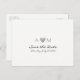 Uma imagem de coração prateado com suas iniciais (monograma), com as palavras "Save the Date", e com linhas de texto personalizadas no verso do cartão postal... para um convite de casamento "save the date" simples e elegante