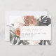 Este cartão RSVP de casamento apresenta aquarela terracotta florals com palmeiras tropicais e boêmia. Use esta modelo para editar a maioria do texto, fonte, cor da fonte e cor do plano de fundo para corresponder ao estilo do evento.
