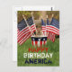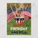 pequeno pedaço patriótico senta-se numa pilha rodeada por bandeiras americanas - e diz: Feliz aniversário América! Totalmente personalizável para personalizar como quiser!