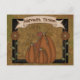 Um postal festivo e primitivo perfeito para qualquer correspondência de outono. Um quadro de queda primitivo com abóboras, girassóis e uma faixa do "Tempo de Colheita" em um fundo gelado. Dois cartões postais laterais. A parte de trás é personalizável. Basta adicionar suas informações ou solicitar o vazio traseiro com pequenas abóboras primitivas no canto direito. O cartão postal perfeito para enviar para sua casa aberta ou venda de outono. Adoravelmente prim!