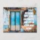 Este cartão postal colorido de nova casa é perfeito para dar parabéns por uma nova casa. O design urbano minimalista e colorido apresenta uma parede azul, bege e marrom e uma porta azul, além de um texto sobreposto em caligrafia branca "Desejando amor, felicidade e alegria em sua nova casa". Personalize o texto na frente se desejar.