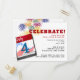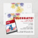 Celebre o 4 de julho com uma festa. Este convite para o dia da Independência apresenta fogos de artifício e uma página do calendário de 4 de julho. Simples tema Branco Vermelho e Azul!