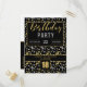 Cartão Postal De Convite 18º aniversário Confetti a preto e Dourado