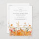 As abóboras de queda estão aninhadas em delicadas flores silvestres amarelas do ouro e laranja para criar uma estética elegante. Todo o texto é editável para que você possa facilmente artesanato seu próprio humor especial.