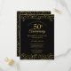 Cartão Postal De Convite 50º Aniversário de Casamento Corações Preto Dourad