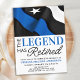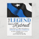 A Lenda Se Aposentou! Convites De Reforma Policial De Linha Azul-Fino. Celebre anos de serviço dedicado, sua aposentadoria policial e convide amigos e família para a sua polícia com este moderno Convite à aposentadoria da Polícia de Sinalizador Azul Thin. DESIGN americano na bandeira da Polícia, cores, design branco azul-preto moderno. Veja nossa coleção para combinar presentes de aposentadoria da polícia, favoritos para festas de aposentadoria da polícia e suprimentos. COPYRIGHT © 2021 Judy Burrows, Black Dog Art - Todos Os Direitos Reservados. Cartão-postal de aposentadoria fina da linha azul com legenda da polícia aposentada