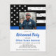Concursos de Graduação da Polícia de Linha Azul fina ou Convites de festas de Reforma Policial. Celebre anos de serviço dedicado, ou comemore seu novo formando da academia de polícia, e convide amigos e família para a sua polícia com este convite à aposentadoria da polícia de linha azul fina e convites para formandos da academia de polícia - design de bandeira americana na polícia, cores angustiadas da design. Este convite para aposentadoria de policial também é perfeito para convites para formatura na academia de polícia, mudança de local na personalização. Veja nossa coleção para combinar presentes de aposentadoria, presentes de graduação policial, favoritos para festas e suprimentos. COPYRIGHT © 2021 Judy Burrows, Black Dog Art - Todos os Direitos Reservados.Policial Retirement Personalizado Cartão-postal de convite para fotografia