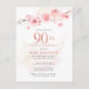 Cartão Postal De Convite Aniversário do 90 Floral Rosa-Rosa-Blush