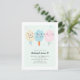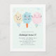 Convite de aniversário bonito para crianças, com doce de açúcar kawaii com confete em cores pastel coloridas contra fundo de menta.