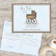 Esta design apresenta um lindo bebê vintage azul, com uma redação de chá de fraldas de menino, e um clássico buggy de carruagem de bebê vintage, com tipografia elegante com script de caligrafia, um bebê clássico de aquarela, um modelo mínimo simples e minimalista, para um bebê chá, um clássico estilo vitoriano clássico, para mamães serem mãe, um clássico cartão postal de chá de fraldas convites.