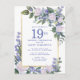 Cartão Postal De Convite Azul branco Dourado Floral 19ª Festa de aniversári