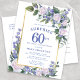Cartão Postal De Convite Azul White Dourado Floral 60th Surpresa Aniversári