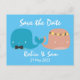 Cartão Postal De Convite Baleias de Desenho Animado Salvam a Data