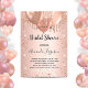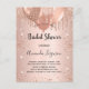 Para um chá de panela elegante. Um fundo de aparência metálica falsa rosa dourado. Decorado com rosa dourado, brilho rosado, aspecto de pingar tinta e balões. Personalize e adicione o nome da noiva a ser e os detalhes da festa. O nome e o texto: Chá de panela são escritos com um script de estilo com letra manual. Traseira: fundo rosa dourado, manchas brilhantes, design postal. Dica: Se você não quiser que pareça um cartão postal, clique em personalizar, vá para o verso e remova o divisor e o carimbo de posto.