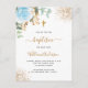 Cartão Postal De Convite Batismo eucalipto verde-azul-ouro-floral