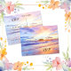 Linda aquarela de um nascer de praia com raios coloridos de luz no céu que também refletem nas ondas do oceano. Imagem mais leve na parte traseira com texto personalizável para as informações de RSVP.