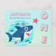 Cartão Postal De Convite Bebê tubarão no primeiro aniversário fofo sob o az
