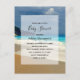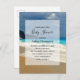 Chá de fraldas ou outro convite para eventos com uma bela fotografia que inclui um mar azul-turquesa e uma praia arenosa com montanhas no fundo.