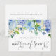 Cartão Postal De Convite Blue Hydrangea e Rosa Marfim Dama de Honra