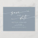 Este casamento azul empoeirado de boho, exceto o convite postal é perfeito para um casamento minimalista. A cinza da boêmia moderna, design azul-clara e neutra, apresenta uma caligrafia rústica simples com um estilo único, mas clássico. Personalize seu cartão postal de data com seus nomes, data do casamento, local e endereço do site do casamento.