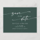 Este casamento "boho chic emerald green"... e salvar a data do convite... é perfeito para um casamento minimalista. O design verde boêmico moderno da floresta de caçadores de escuros e modernos apresenta uma caligrafia rústica simples com um estilo único, porém clássico. Personalize seu cartão postal de data com seus nomes, data do casamento, local e endereço do site do casamento.