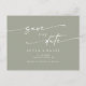 Este casamento "boho chic sage green", salvo a data do convite postal é perfeito para um casamento minimalista. A moderna design boêmica verde-luz neutra apresenta uma caligrafia rústica simples com um estilo único, mas clássico. Personalize seu cartão postal de data com seus nomes, data do casamento, local e endereço do site do casamento.