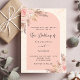 Para um casamento moderno do estilo boho. Um quadro de arco e impressão de mármore dourado rosa como fundo. Decorados com ouro rosa e flores, rosas e erva-pampas cor-de-rosa. Personalize e adicione nomes e detalhes.