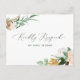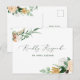 Cartões postais de resposta RSVP achatados lindos coordenam-se perfeitamente com os convites correspondentes nesta coleção para completar a suíte de convites de casamento. Apresentando um elegante e neutro tom pastel com cor aquática, estrutura floral botânica em tons suaves de pêssego, laranja, pincel suave, amarelos e muitos tons de verde de verde sábio a verde brilhante e profundo. Seus detalhes personalizados são exibidos em um layout tipográfico elevado.