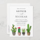 Cartão Postal De Convite Boho Potted Succulents and Cactus QR Code Wedding