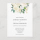 O convite de casamento elegante apresenta um arranjo de flores brancas e verde. Por favor, é um POSTCARD de convite, não inclui envelopes.