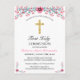 Cartão Postal De Convite Bonito Rosa Floral Dourado Primeira Comunhão Santa