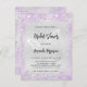 Um chá de panela moderno e elegante. Fundo de aspecto fino prateado decorado com faíscas roxas e uma borboleta grande. Personalize e adicione um nome e detalhes da parte. Letras pretas coloridas.