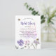 Um fundo branco. Decorados com abelhas e pintados de flores silvestres em violeta, rosa e uma borboleta grande. Personalize e adicione um nome e detalhes da parte.