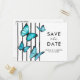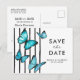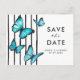 Cartão Postal De Convite Borboletas de aquarela azul Modernas salvar a data